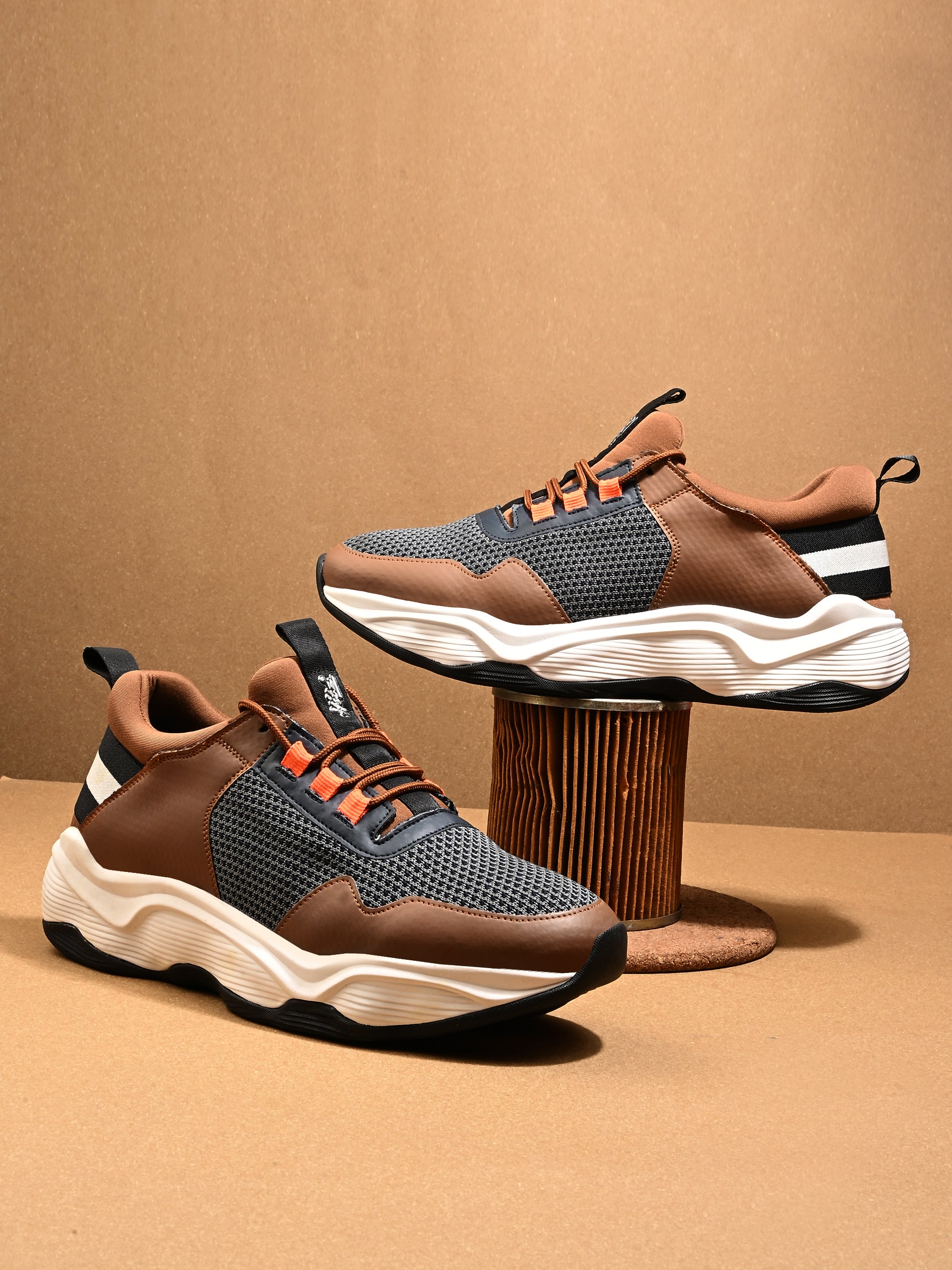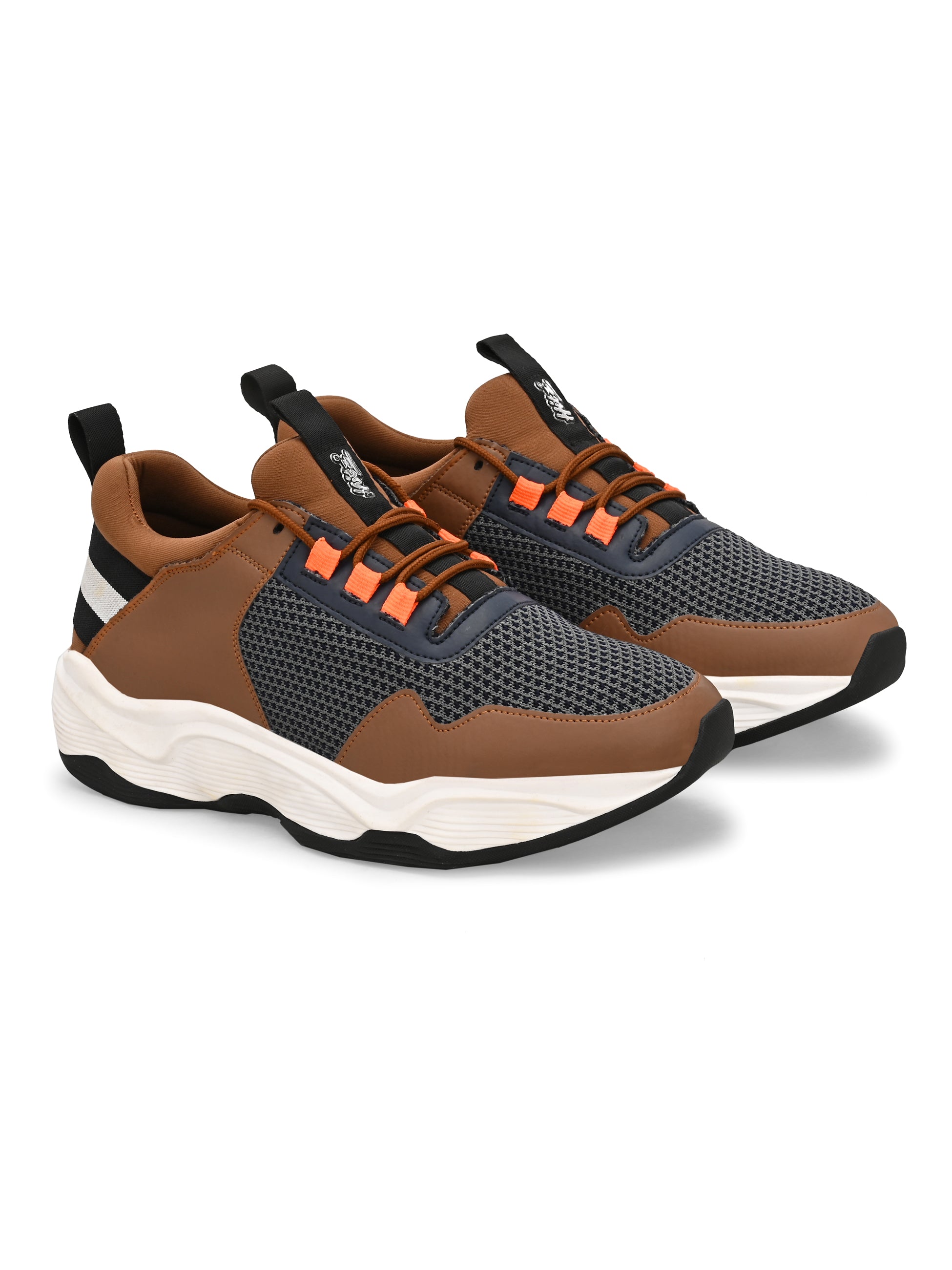 Hitz Men's Grey & Tan Casual Lace Up Shoes